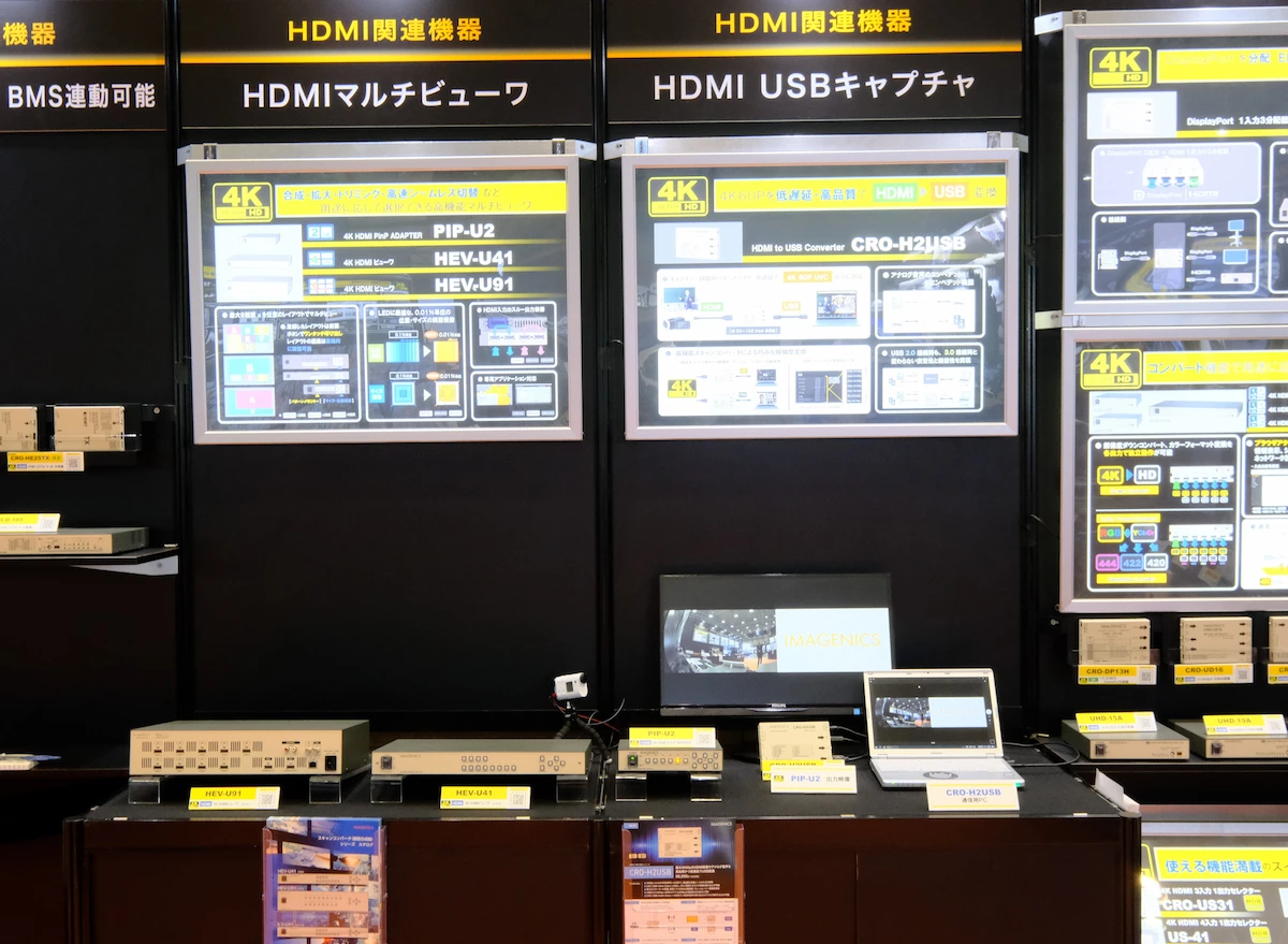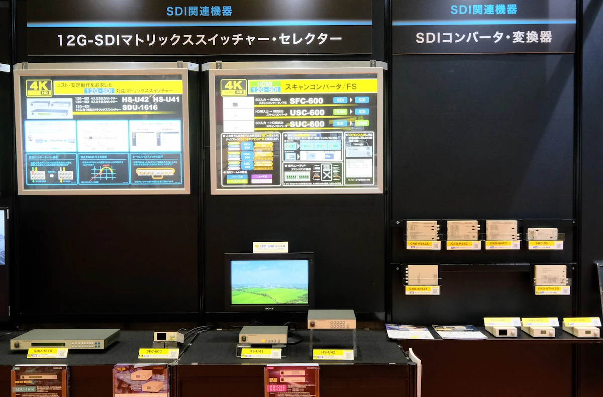 HDMI⇔12G-SDIへ変換するUSC-600/SUC-600など、12G-SDIのラインナップが充実、各機器の実機動作展示をご覧いただきました。
