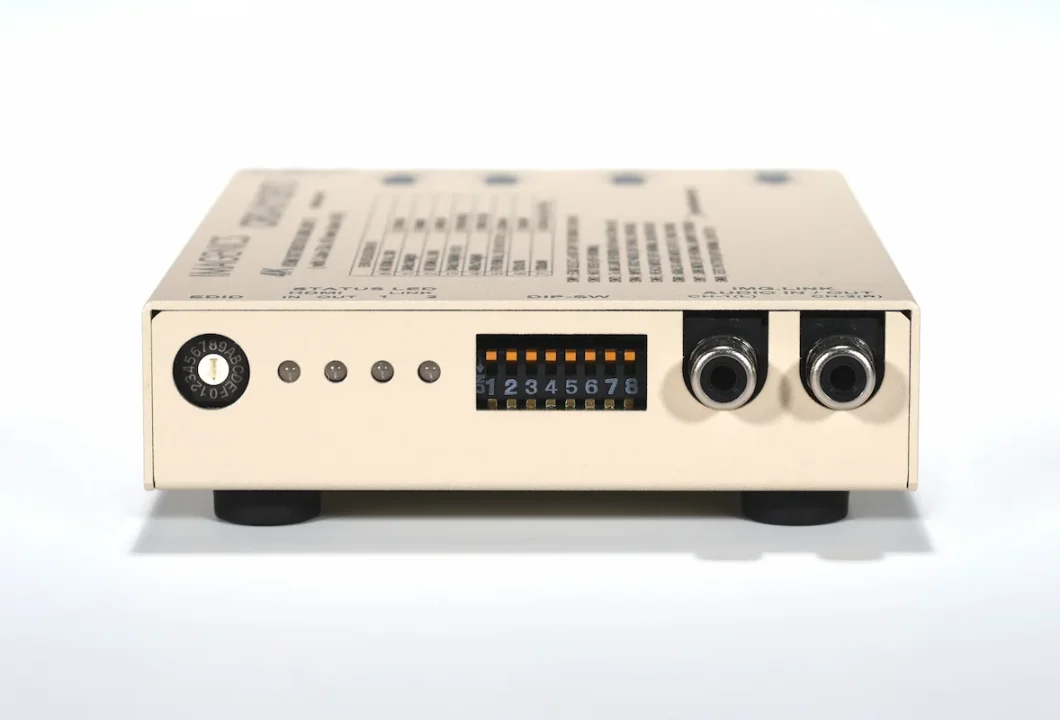 (HDMIアクティブ分配出力を除き全てのLPCM音声は48kFs / 24bitへ全自動変換されます) - アナログステレオ音声のエンベデット・デエンベデット機能があります。音声エンベデット機能はDVI信号のHDMI信号化も可能です。